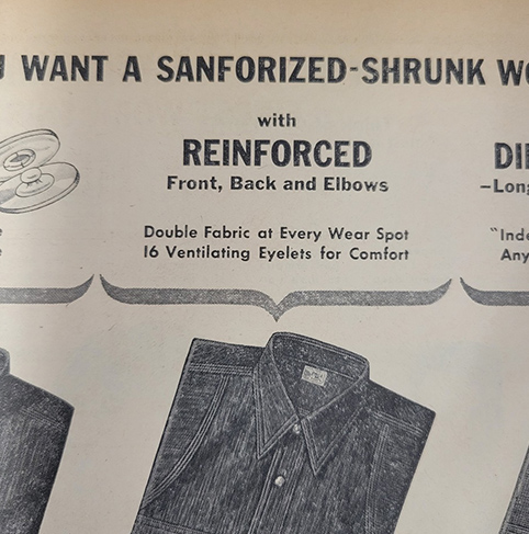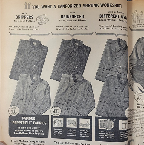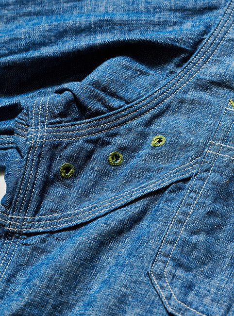 「REINFORCE」 (リインフォース) とは「強化」を指す言葉で、このシャンブレーの場合、肩の補強(荷物を肩に担ぐさい、擦れによる磨耗を補強)袖口から肘を補強(肘をつく作業による磨耗を補強)を意味している。生地を余分に使う必要があるため、第二次世界大戦中にはみられなくなる仕様である。